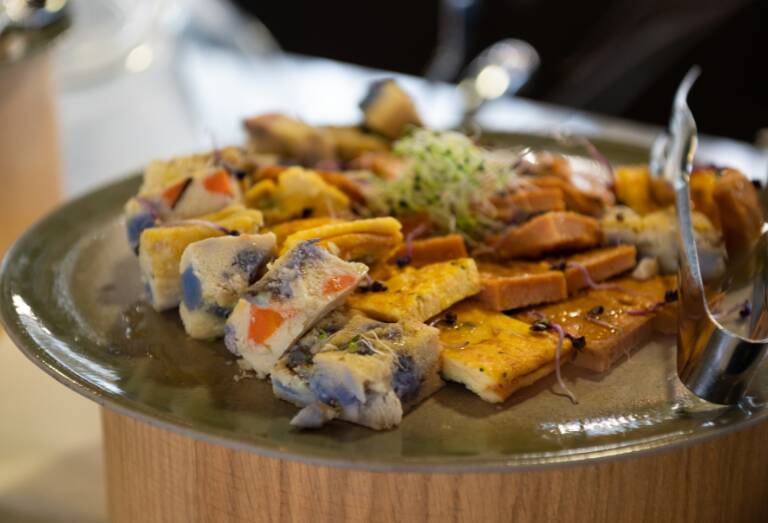 Un buffet su più tavoli a formare un percorso tutto da gustare al costo di 18 euro (escluso coperto).